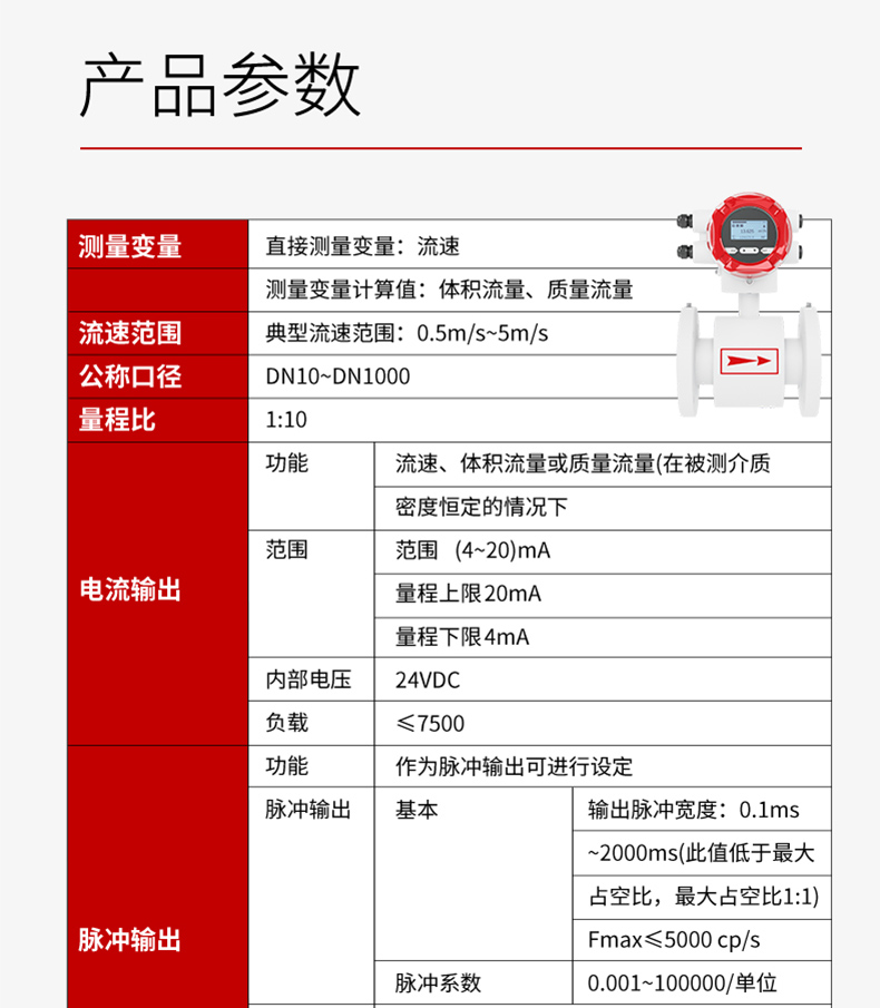 电磁流量计基于法拉第电磁感应原理设计,用于直接测量封闭管道内导电液体的瞬时流量,并具有流量累积功能。在进行现场监测显示的同时,可输出标准的电流信号、脉冲信号和 RS485 数字信号,供记录、调节、控制使用,实现检测自动控制。可广泛应用于自来水、化工、煤炭、环保、轻纺、冶金、造纸等行业。