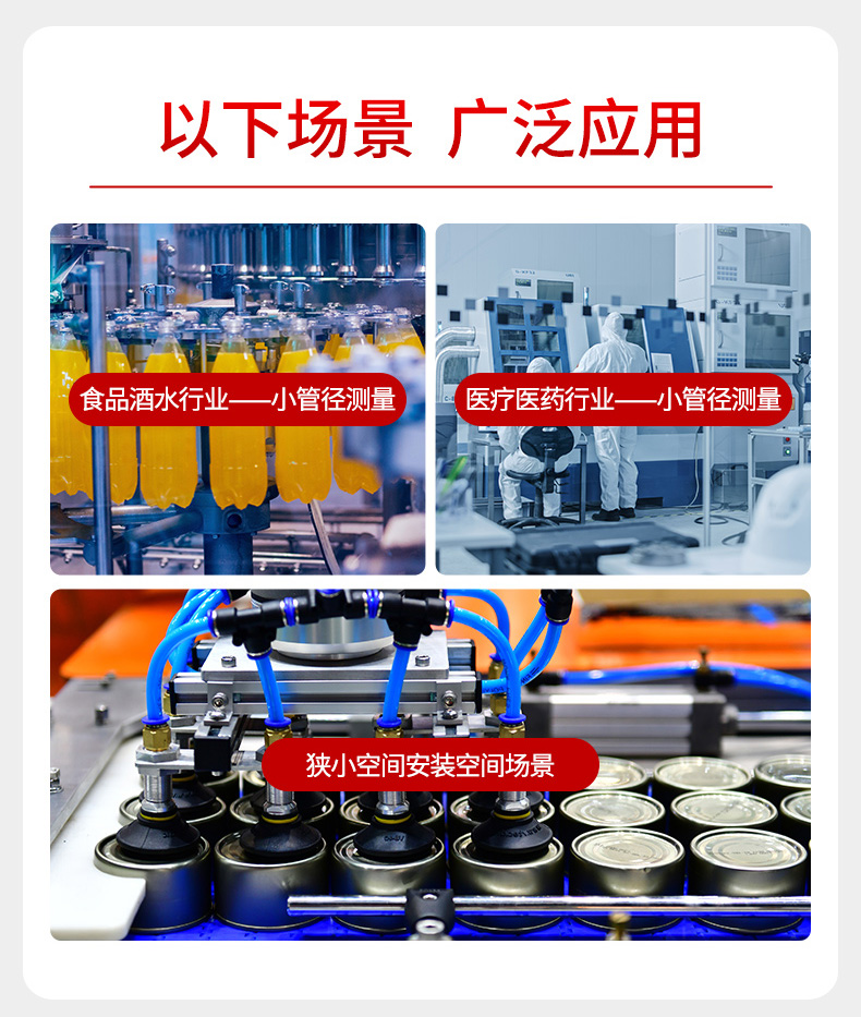 电磁流量计基于法拉第电磁感应原理设计,用于直接测量封闭管道内导电液体的瞬时流量,并具有流量累积功能。在进行现场监测显示的同时,可输出标准的电流信号、脉冲信号和 RS485 数字信号,供记录、调节、控制使用,实现检测自动控制。可广泛应用于自来水、化工、煤炭、环保、轻纺、冶金、造纸等行业。
