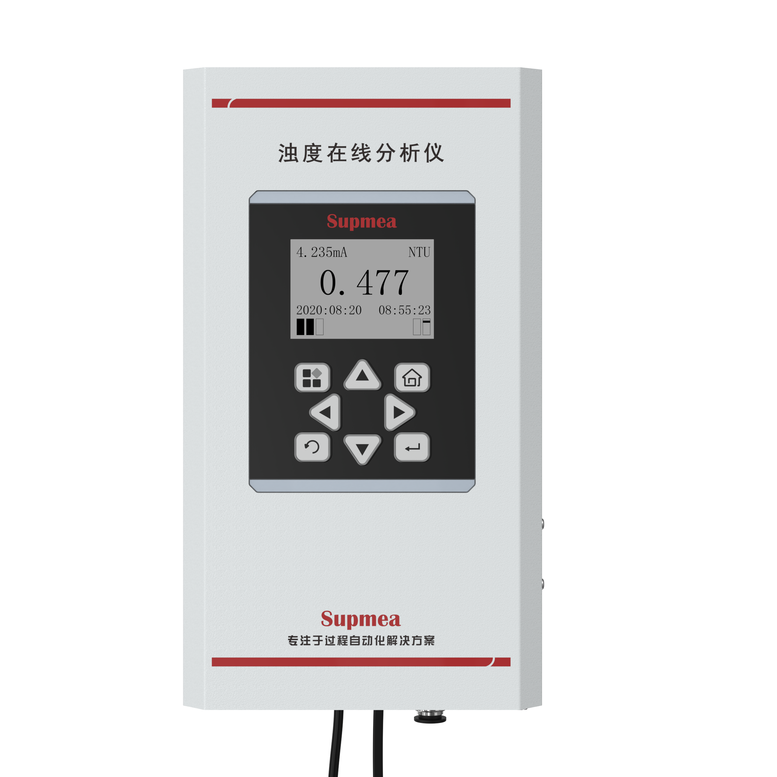红外双散射光线技术不受色度影响测定浊度值。根据使用环境可以选配带自清洗功能。数据稳定,性能可靠;内设自诊功能,保证数据准确;安装和校正简单。
